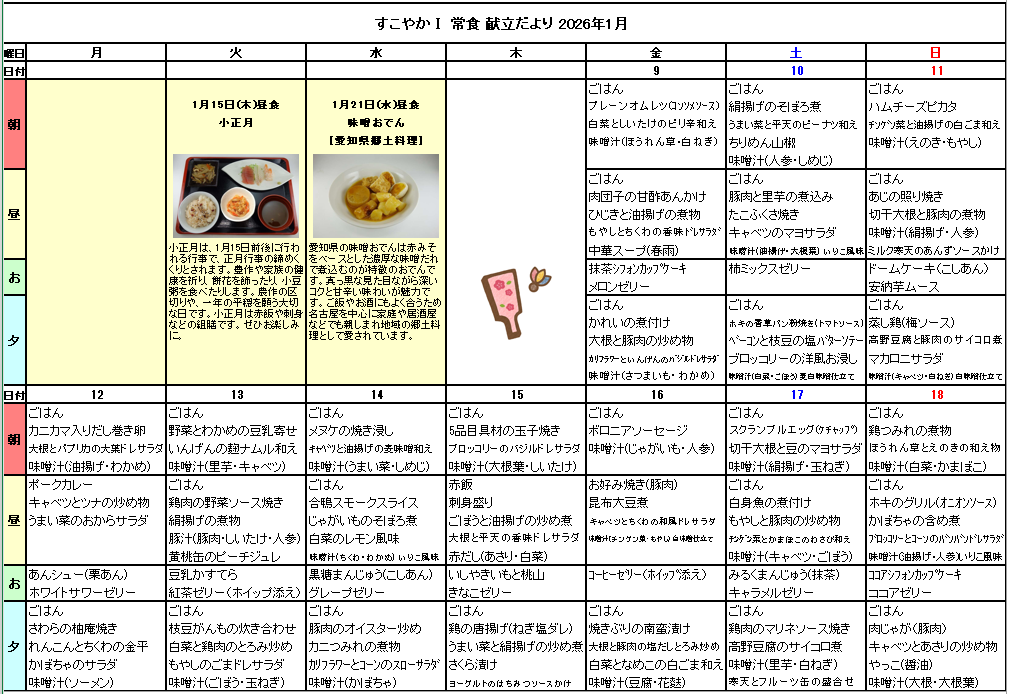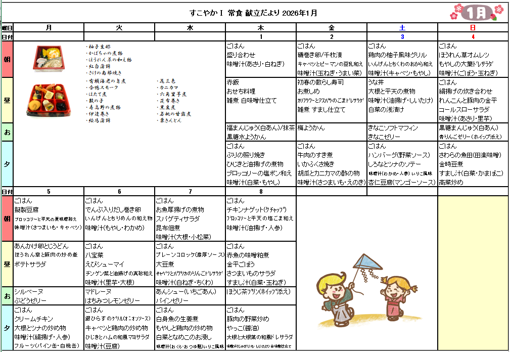 2026年1月献立表を掲載いたしました