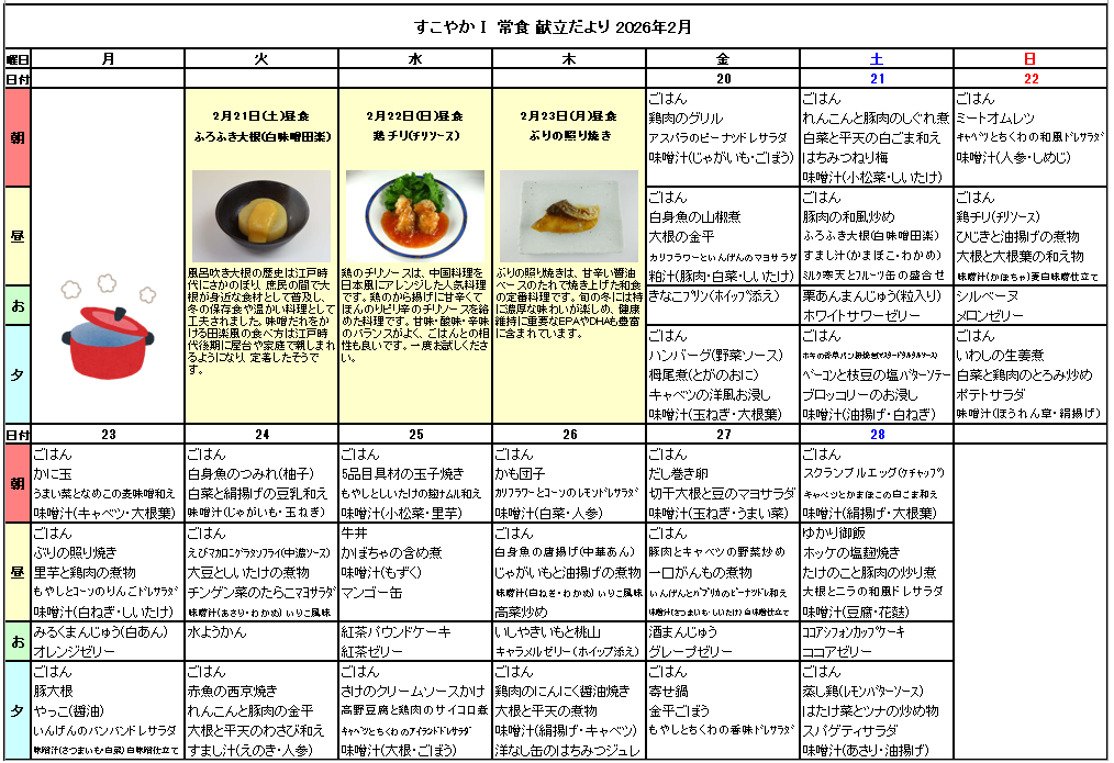 2026.01.26 お知らせ2026年2月献立表を掲載いたしました -